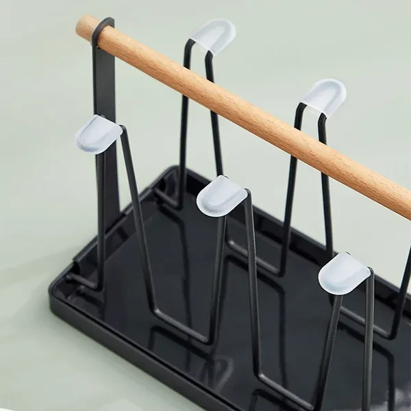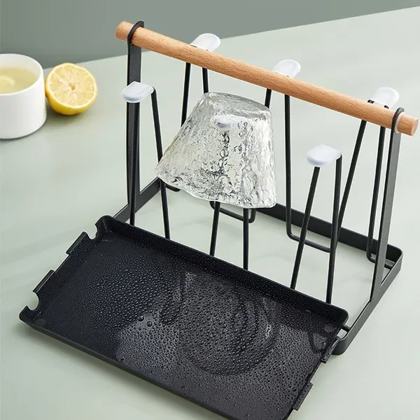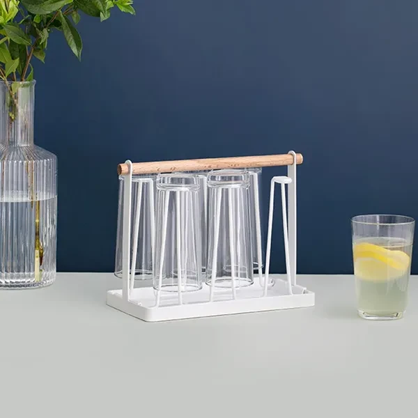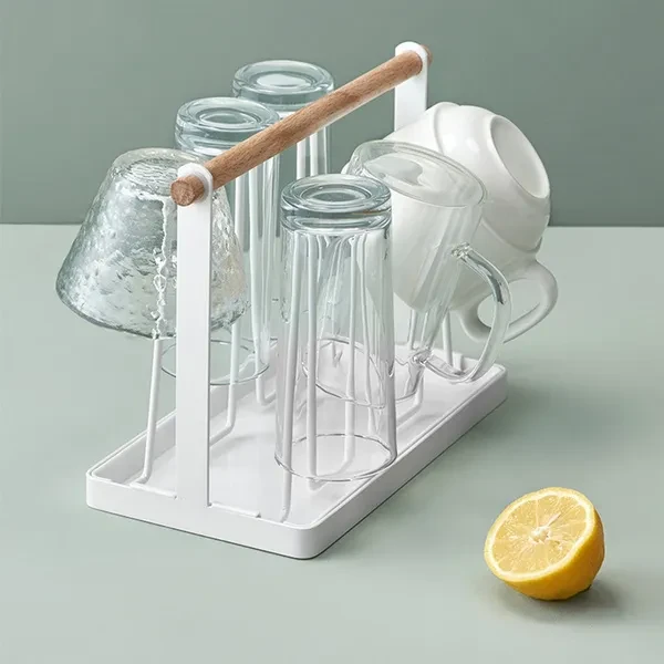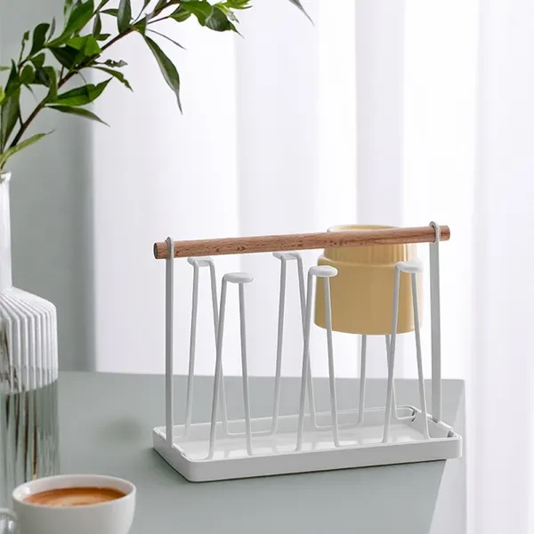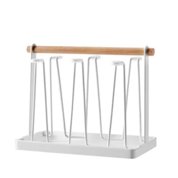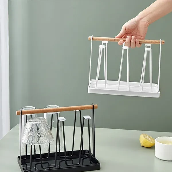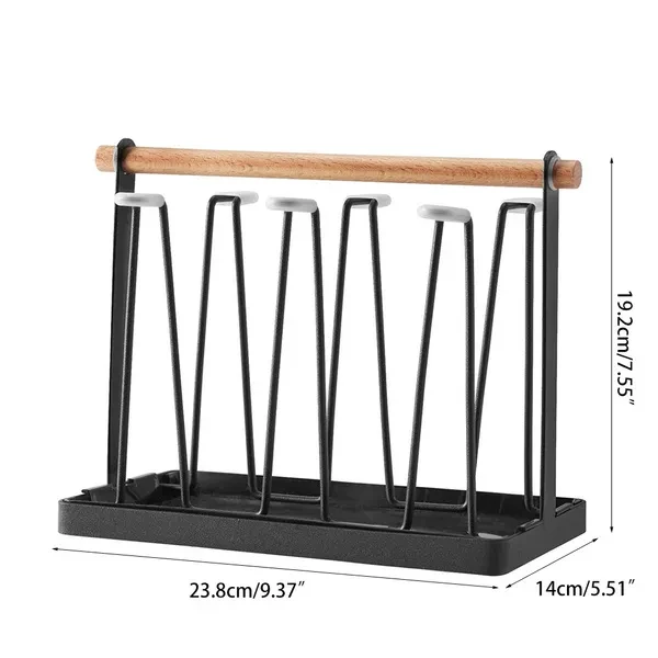 <p>Creative Inverted Cup Drying Rack Metal Stand with Tray Wood Handle Wrought Iron Bottle Mug Glass Organizer Drainer Holder for Kitchen Cabinet Features: 100% brand new and high quality This cup holder can be used in your kitchen to hang 6 washed cups, mugs and water bottles. A good helper for your home organization. It has a handle made of wood, which is beautiful and easy to handle. There is a drain pan at the bottom of this cup holder, which is used to collect the water of the washed cup and prevent messing up your table. The top of each hook comes with a soft to prevent damage to your cup. Made of high quality iron coated with the rustproof surface, not easy to rust, not easy to deform. The wooden rod at the top is removable. You can remove the rubber ring to remove it. Modern design makes the cup holder can be used in the kitchen, living room and other places. Specification: Material: Iron+Wooden Optional Color: Black, White Size: app. 23.8x14x19.2cm/9.37x5.51x7.55in Quantity: 1 pc Note: Transition: 1cm=10mm=0.39inch No retail package. Please allow 1-3cm error due to manual measurement. pls make sure you do not mind before you bid. Due to the difference between different monitors, the picture may not reflect the actual color of the item. Thank you! Package includes: 1 x Cup Drying Rack(other accessories demo in the picture is not included.)</p>