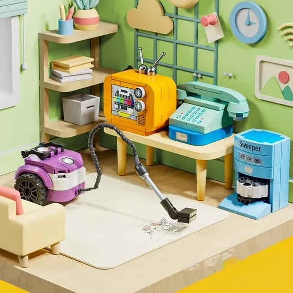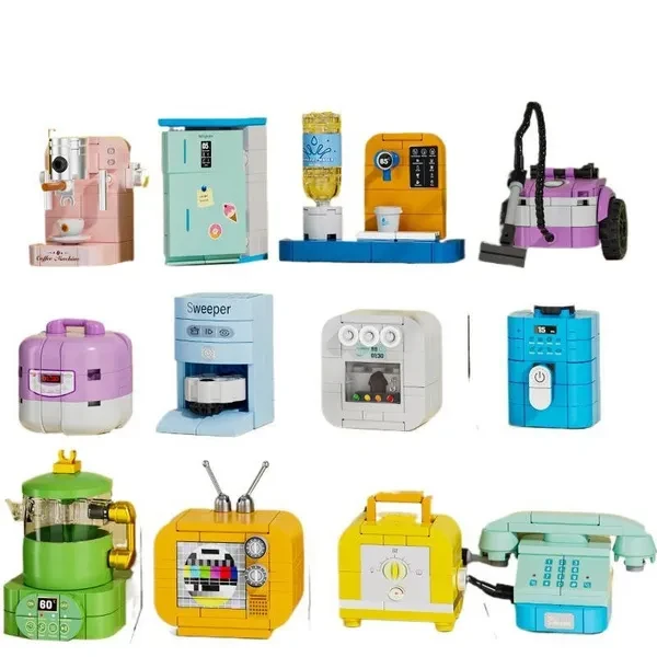 Creative Retro Classic Small Home Appliance Vacuum Cleaner Coffee Machine Bread Maker Building Blocks Bricks Toys Gifts
