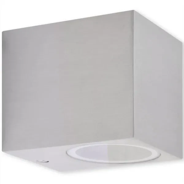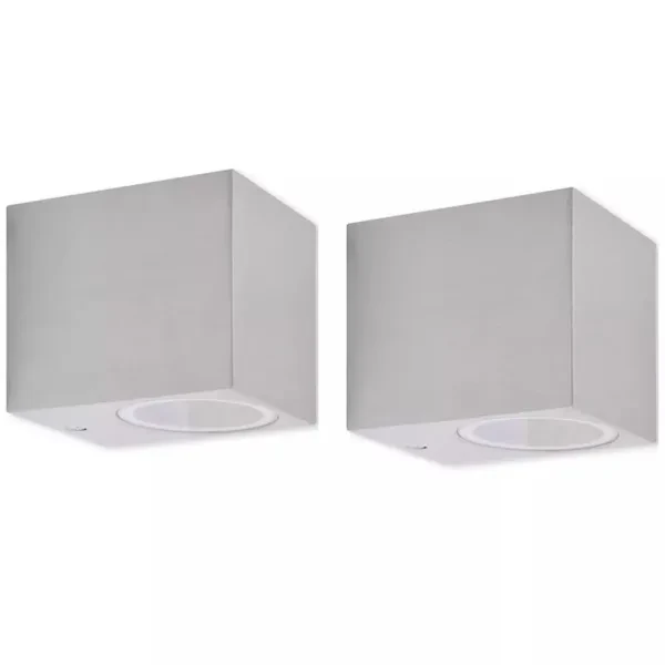 This set of 2 cube wall lights has a minimalist, modern design. Made of aluminium in a stainless steel look, this sleek wall light set will enhance any outdoor space. The integrated glass diffuser adds to the overall look of the set. By casting the light downwards, this cube wall lamp set emits a pleasant light that is particularly suited for the front of your home or for your garden. With its IP44 rating, this wall light set is weatherproof and durable. Therefore, it is extremely suitable for outdoor use. This cube outdoor wall light set is suitable for bulbs with a maximum power of 50 Watts. Please note that the bulb is not included in delivery. Dimensions: 6.8 x 9.2 x 8.1 cm (L x W x H) Die-cast aluminium body with a stainless steel look With glass diffuser Voltage: 220-240 V~, 50 Hz Maximum bulb power: 50 W Socket type: GU10 IP rating: IP44 The light is cast downwards Suitable for outdoor use The bulb is not included in delivery Delivery includes 2 cube outdoor wall lights