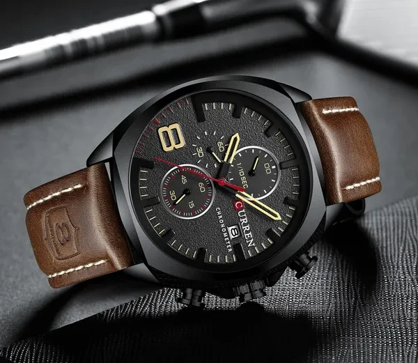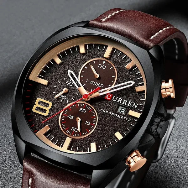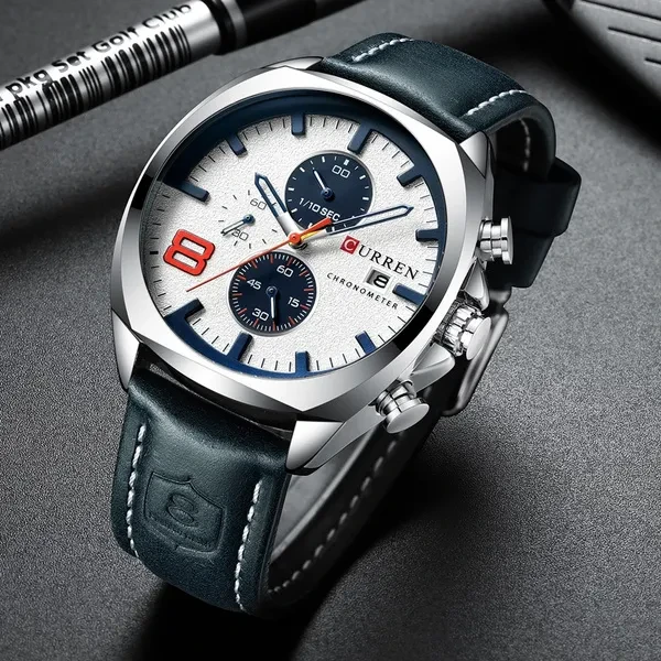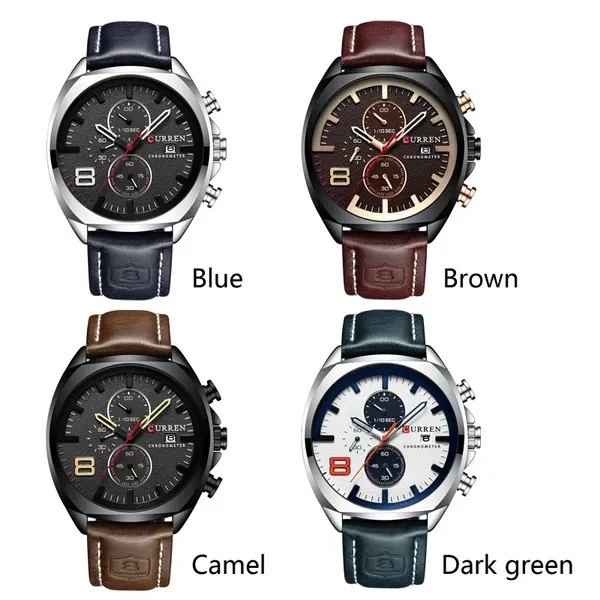 - 100% brand new and high quality. - Precise quartz movement for accurate time keeping. - High quality stainless steel case. - High quality leather band. - High abrasion resistant glass. - Date/day display. - Chronograph watch, 1/10 seconds dial, seconds dial and minute dial. - 3ATM daily waterproof ,perfect for protect little water like wash hand/sweat/rain,but can not put into water or shower or swimming. - Color may not appear as exactly as in real life due to variations between the computer monitors and nacked eye color difference. - Best gift for friends/family/lover/yourself. Specification(Approx): Case diameter: 46mm Case thickness: 13mm Case Material: Stainless Steel Band Width: 22mm Band Length: 240mm Band Material: Leather Band Adjustable: Yes Package Included: 1 x Mens Watch