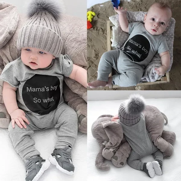 Brand:: Unbrand Occasion:: Casual Color:: Gray/Black Season:: Summer Material:: Cotton Country/Region of Manufacture:: China Sleeve Length:: Short Sleeve Pattern:: Letters Package included: 1 x Jumpsuit Size Chart: Size Length Chest*2 Age Advice 70 50 CM 27 CM 0-6 Months 80 53 CM 28 CM 6-9 Months 90 56 CM 29 CM 9-12 Months 100 59 CM 30 CM 12-18 Months