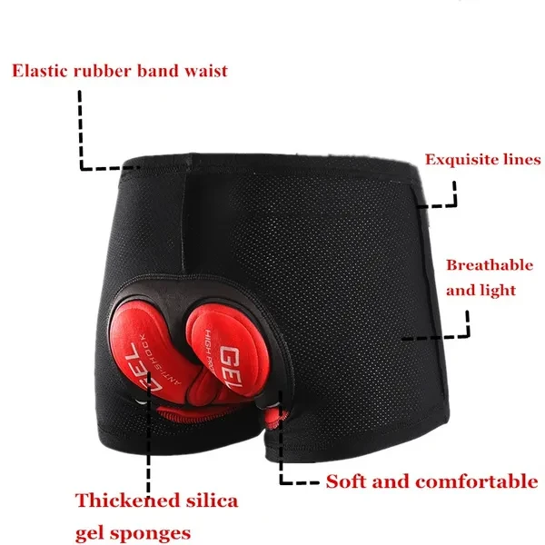 Material: Polyester,LycraGender: MenFabric Type: JerseyFeature: Anti-sweat,Quick DryFit: Fits true to size, take your normal sizeItem Type: ShortsSport Type: CyclingModel Number: Pro Cycling UnderwearPad Style: 5D GEL Breathable PadPants Material: 80% Polyester and 20% LycraFeature: Breathable/Quick-Dry/Comfortable/Anti-Pilling/ Anti-sweat