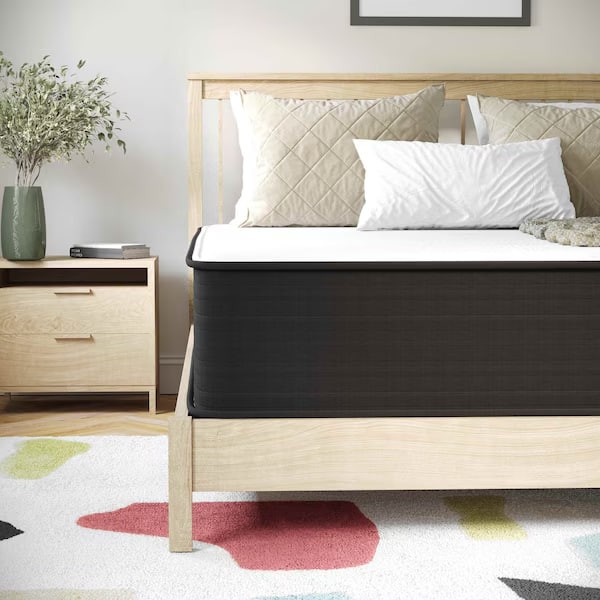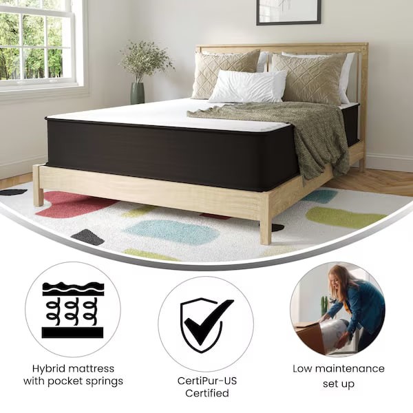Dream 12 in Hybrid Mattress, Queen Size High Density Foam and Pocket Spring Mattress in a Box, White/Black