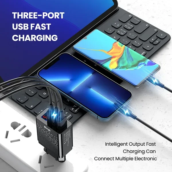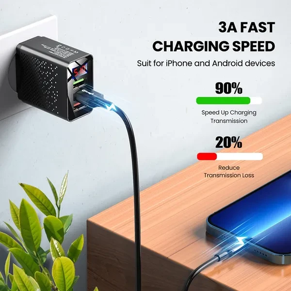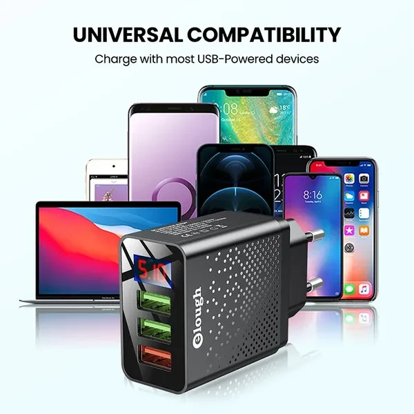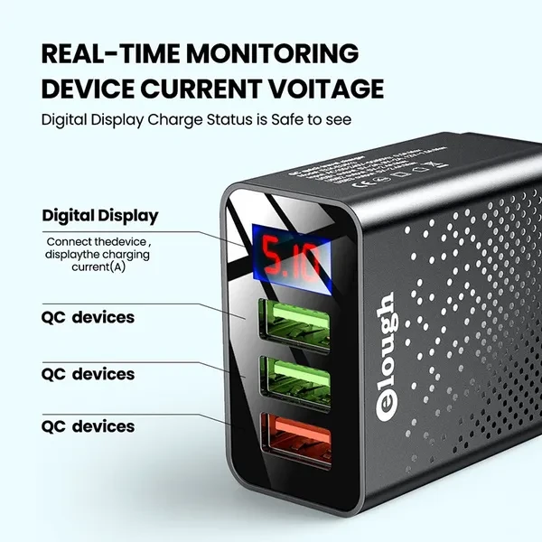 Elough 3-Ports Digital Display Quick Charger USB Fast Charger Mobile Phone USB Charging Adapter for Huawei Xiaomi for Samsung and Other Phones