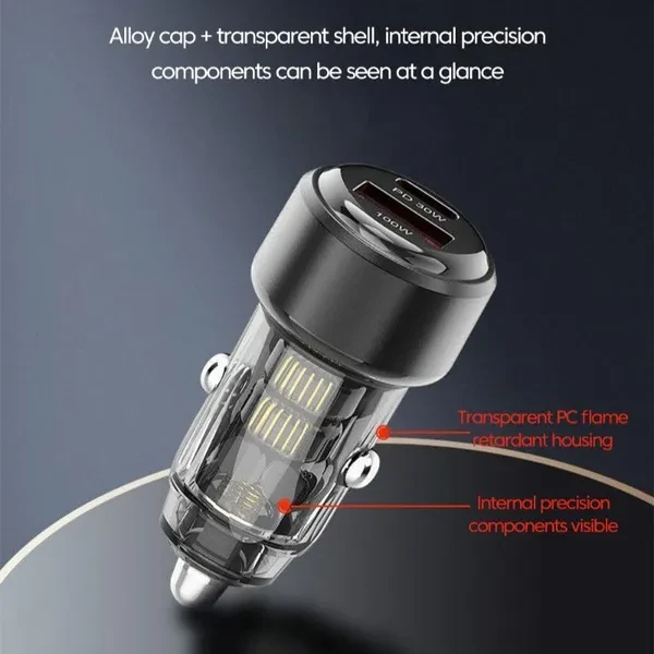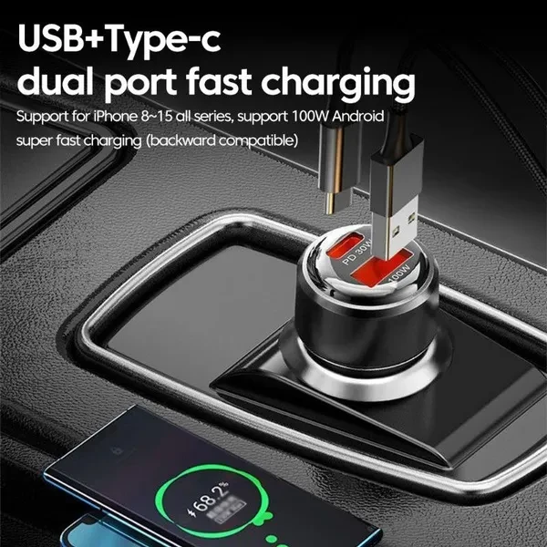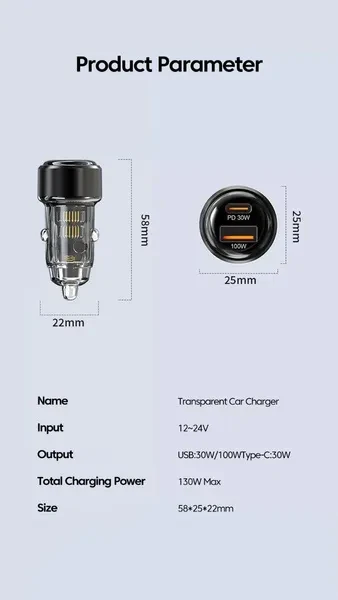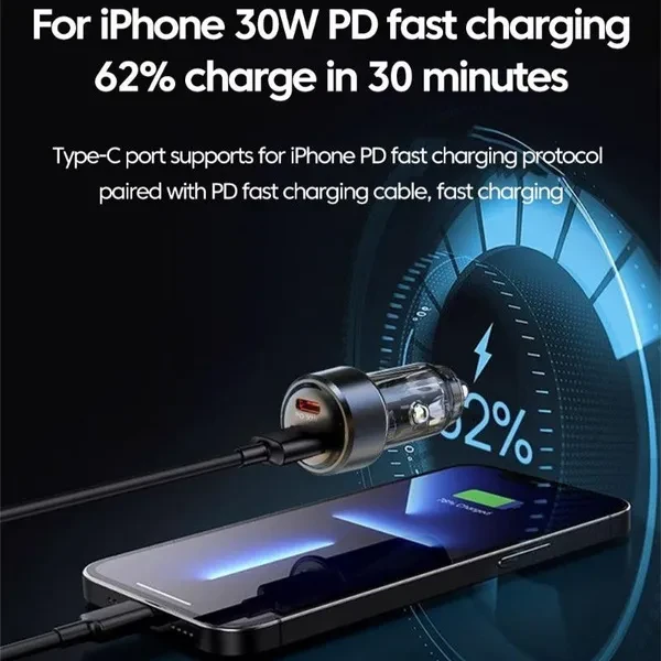 Brand Name: elough Certification : CE, FCC, RoHS Type : Car Charger Input voltage: 12-24V Output current: 2-5A Type C: PD30W supports IP8-16 full series PD fast charging USB interface: Supports multiple protocols such as 100Wmax/66W/40W/OPPO 65W/Huawei/Xiaomi/VIVO for super fast charging Material: PC+ABS Color: Black Feature 1: 2-Ports Car Charger/ Fast Charger in Car Feature 2: Ultra-Mini Design; Intelligent Safety Protection Feature 3: Suitable for mobile phones, tablets, notebooks, game consoles, driving recorders, etc. Package Included : 1 * Car Charger