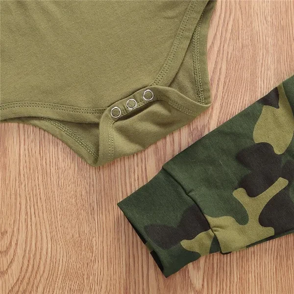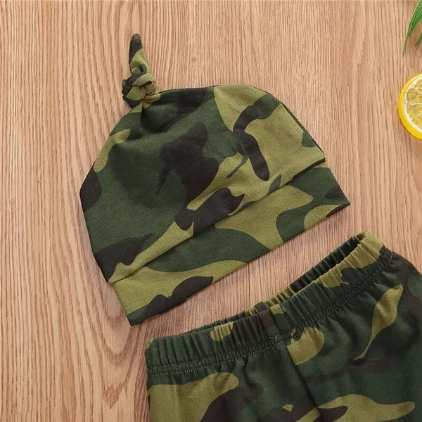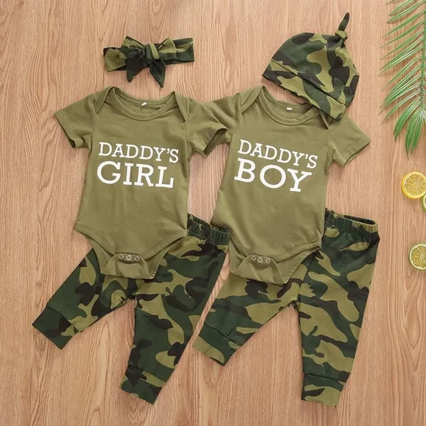 Fashion Daddy's Boy Girl Newborn Toddler Baby Clothes Letter Print Romper Tops + Camo Pants + Hat Outfit Set