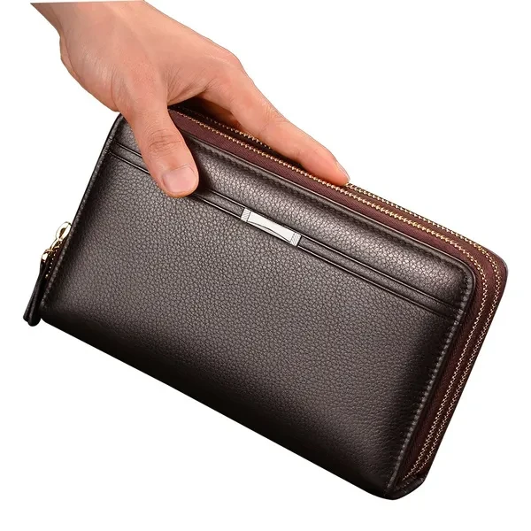 Fashion Double Zipper Men Clutch Bag PU Leather Large Capacity Mens Handbag Phone Wallet Card Holder