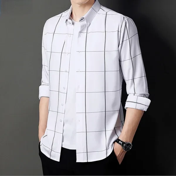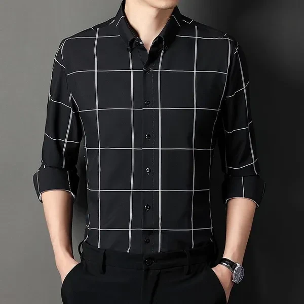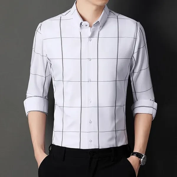 Fashion Men Plaid Shirts Pure Color Cotton Business Long Sleeved Shirts 5 Colors
