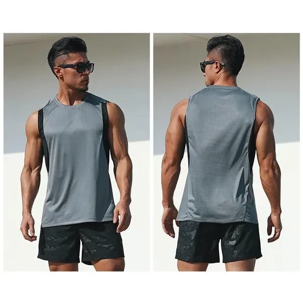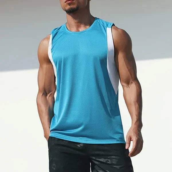 Fashion Quick-drying Singlet Men's Sports Sleeveless Breathable Vest Fitness Training Tank Tops Men Round Neck Running Fitness Muscle Training Tops
