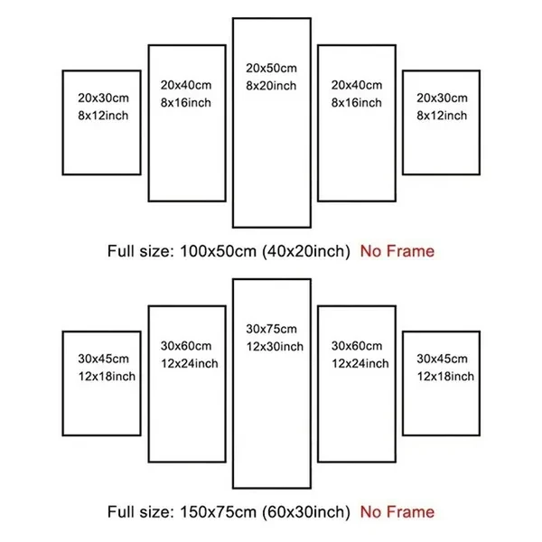 Oil Painting Types: Common Oil Painting Material: Non-woven fabric Size :SMALL5PCS:: 10x15cm x2pcs 10x20cmX2pcs 20x25cmx1pcs. MEDIUM:20x30cm x2pcs 20x40cm x2pcs 20x50cmx1pcs. LARGE:30x45cm x2pcs 30x60cmx2pcs 30x75cmx1pcs. Note: 1inch=2.54cm,1cm=0.39inch Production method: computer spray painting Weight:small:70g medium:170g large :310g Package: 5 pcs/set All the Canvas Painting We sale is unframed or Unstretched, because if framed, shipping cost will be very High, Much higher than customer ask some shop to frame it at local place, What is more, some customer like to Stick or hang it on the wall direct without frame.