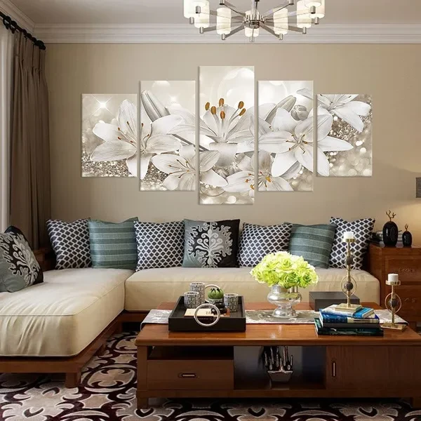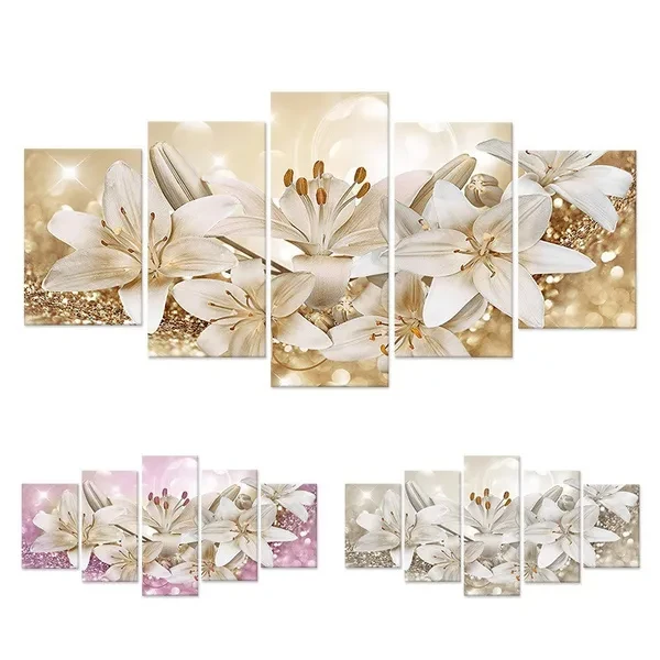 Five Pieces Canvas Painting Lily Oil Painting Modern on Canvas Painting Poster Wall Art Picture Print Home Wall Decoration Gifts