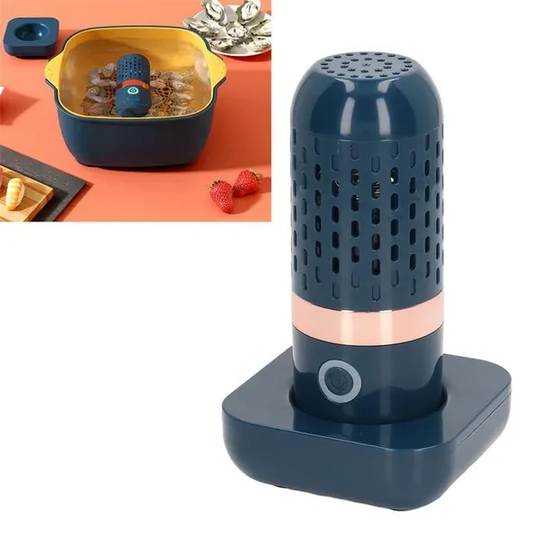1. Applications: Fruit and vegetable washing machines are widely used for cleaning tableware, fruits and vegetables, kitchen utensils, bottles, rice, fish, meat, seafood, food and purifying tap water. 2. Cleaning Functions: Putting it into water for electrolysis to generate oh ions, it can quickly degrade or harmful substances into safe ones, which can provide effective protection for the body of the family. 3. Applicable Scene: Essential items suitable for family, dormitory, camping, RV, outdoor travel. It can be tucked into your suitcase when you are on a business trip, and it can easily fit in any bag. 4. Convenient: Flexible rotation, easy disassembly and cleaning. It keeps food full of freshness and eats more. is as simple as pressing the switch. 5. IPX7 Waterproof: Safe protection, can be picked up at any time during purification to prevent electric shock, family members can use it safely. Specification: Item Type: Fruit and vegetable purifier Material: Food grade ABS Gross Weight: 450g / 15.9oz Product Size: 14.5x5.5x5.5cm / 5.7x2.2x2.2in(without base) Color: Blue Voltage: 5V Power: 8W Waterproof Grade: IPX7 Battery: Polymer lithium battery 3000mah (included) Fully Charged Can be Used: ≥ 20 times Working Time: The default is 10 minutes each time (3-5L capacity of water) Package List: 1 x Fruit and Vegetable Washing Machine 1 x Base 1 x USB cable 1 x Manual