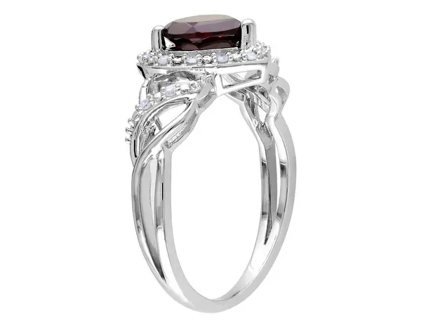 Garnet Heart Ring 1.50 Carats (ctw) in Sterling Silver Sleek sterling silver is set with a heart shaped rich red garnet at its center in this promise ring featuring the birthstone of January. Beautifully crafted in 0.925 sterling silver with a Polished Finish Stone Type: Garnet; Color: Red; 1.4 CTW; Quantity: 1; Heart Cut; Heart Shape; Dimensions: 7x7 mm; Natural; Prong Setting Stone Type: Diamond; Color: G-H; Clarity: I1-I2; .085 CTW; Quantity: 17; Brilliant Cut; Round Shape; Natural; Prong Setting Garnet Gemstone is the Birthstone for the Month of January This Heart Ring is the perfect gift for any birthday, anniversary, holidays, thank you, thinking of you, or for any reason at all SKU: 68DLG49362GA-P