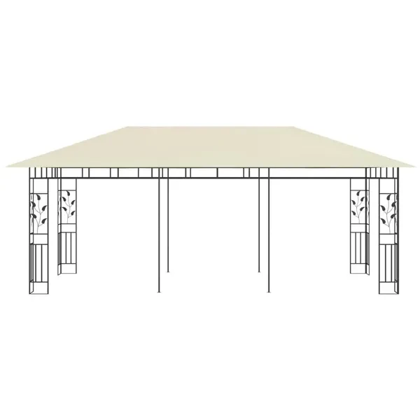 If you are looking for canopy addition for your outdoor activities, this garden gazebo is the perfect pair for your courtyard, allowing you to make the most out of your garden. The frame features sturdy metal construction and keeps the frame durable and steady. Fabric sunroof protects you from the searing sun, helping you enjoy better comfort during your outdoor activities. This tent, equipped with mosquito nets, guards you against insects and mosquitos. So you can enjoy your outdoor leisure time without disturbance. Also, this gazebo can be installed in a short time. Note: This product should NEVER be used under bad weather, such as strong wind, heavy rain, heavy snowfall, storm, etc. Colour: Cream Material: Powder-coated steel, fabric (100% polyester) Overall dimensions: 6 x 3 x 2,73 m (L x W x H) With mosquito nets Flowers and leaves carving design frame Weather-resistant Assembly required: Yes