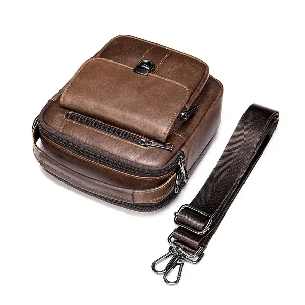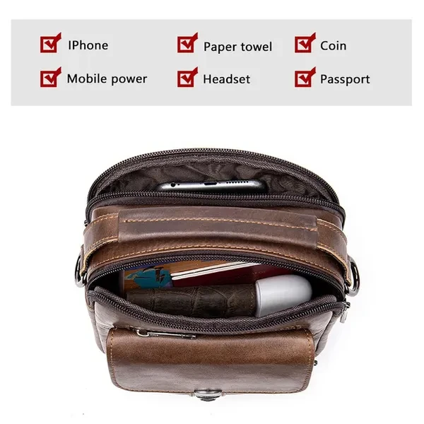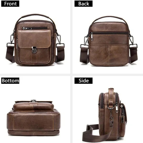 Size: 7"L x 8"H x 4"W. Minimal yet practical size for your daily small items. (Not available for iPad or iPad Mini.) Adjustable shoulder strap- adjusted from 16 to 29 inches with clasp, strap width 31mm. A leather top handle is helpful for carrying. This handbag has 5 zipper pockets, give you more access to various items in separate compartments. It even features a press-on clip buckle pocket for anti-theft! Hand crafted from full-grain leather. It is a thick cowhide, soft, comfortable and durable. Best for travel, everyday, riding motorcycle or bike, work, shopping, school, hiking.