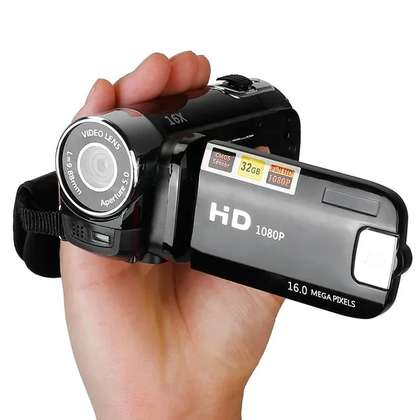 Camcorder Digital Video Camera is able to shoot 1080P high-definition videos with 16X zoom, providing better picture resolution and selfie options. Besides, sensitive microphone provides better sound recording effect. The LED fill compensation light ensures more convenient shooting in low light condition. A great digital camera for you to start learning photographing. A great gift for your kids to cultivate shooting and photographing interests. Feature: *1080P HD Resolution & 16X Zoom: The 2.7in display ensures clear, smooth and realistic image while obviously reducing the irritations to the eyes. Our video camera max supports 1080P Video Resolution, 16MP (4032x4032) JPEG Image Resolution and 16X zoom. Use this camera to take vivid photos and videos, clearly recording all the wonderful moments in your life. *Multi-function Digital Camera: Our digital camcorder supports video recording, self-shooting and voice recording. There are several time intervals optional to let you make the optimal selfie. It\'s a perfect gift for friends, family members to record their special lovely moments and travel time! *Support 32G Memory Card: The camcorder supports SD/HCSD card up to 32GB (not included), just remember to format the Memory card before use the camcorder first time. *Foldable Camcorder: Foldable and lightweight, portable for you to carry around. 270 Degree rotation can suit your different viewing angle. It is convenient for you to review it while shooting. The camcorder can support standard tripod stand to mount. Please fully charge the digital video camera before using it. Recommend to prepare for a power bank when you travel. * Convenient Fill Light: Come with a fill light, turns on when double clicking the center button, complement the light source when in low light environment. Note: Don’t using in dark environment for better photographing effect. ecification: Product Type: Digital Video Camera Color Available: Black Sensor Type: CMOS Sensor Pixel: 16 Million Pixels Screen: 2.7in LCD Screen Expandable Storage: Memory Card (Up To 32G SD Card, Card Not Included) Apertures: F5.0, 9.88mm Lens Inbuilt Microphone, Speaker Power Supply: AC 110-220V USB Input: 5V/1A Battery: 1Pc 450mAh Lithium ion Battery Fully Charged Time: 1Hr Runtime: 1Hr Fill Light: 0.06W Voice Recording Format: WAV Focus Range: Standard Mode, 1.4m To Infinity Zoom: 16X Digital Zoom Recording Resolution: 1080P(1920x1080);720P(1280x20);VGA(640x480) Recording Cycle: Off/3Min/5Min/10Min Exposure: EV -2.0/-1.7/-1.3/-1.0/-0.7/-0.3/+0.0/+0.3/+0.7/+1.0/+1.3/+1.7/+2.0 Time Setting: YYYY/MM/DD; DD/MM/YYYY;MM/DD/YYYY Auto Power Off: Off/1Min/3Min/5Min Screen Saver: Off/1Min/3Min/5Min Language Support: Chinese; Traditional Chinese; Karen; Japanese; Italian; etc.. Camera Resolution: 16M(4032x4032);12M(2560x1440); 5M(1920x1080);3M (1280x720); 2M(640x480); 1M(320x240) Photo Selfie: Single Shot; Selfie 2S/10S; Burst Quality: Super Fine; Fine; Normal Data Label: Off/Date/Date Tine Material: ABS USB Cable Length: 77.5cm/30.51in Extended Item Size: 14x11.2x5cm/5.52x4.41x1.97in Folded Item Size: 11.2x5.3x5cm/4.41x2.09x1.97in Item Weight: 146.5g/0.33lbs Package Size: 15*12*8cm/5.91*4.72*3.15in Package Weight: 263g/0.58lbs PackageContents: 1 x Digital Video Camera 1 x USB Cable 1 x Adapter 1x User Manual Note: *Not recommend to use it when in dark environment *Suits for people who learns to photograph. * A mobile power is needed when you carry this DV on travelling. * Memory card is not included. * Can connect with computer.