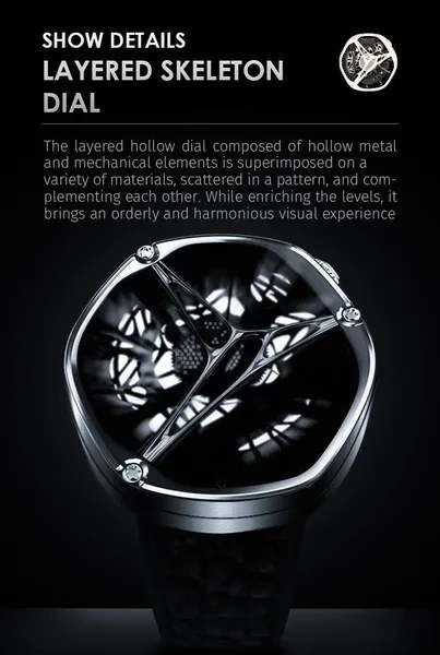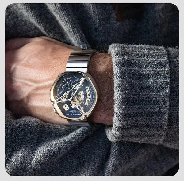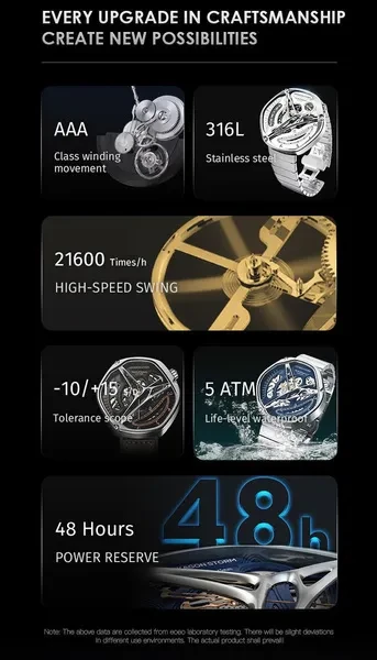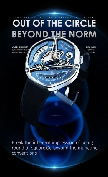 Hexagon Storm Mechanical Wristwatches Series name Hexagon Storm Movement type: automatic winding mechanical movement Power reserve up to 36 hours Pointer style: Special-shaped three-pin type Dial diameter 44 mm Dial thickness 13 mm Strap width 20 mm Watch circumference 240 mm Watch mirror Sapphire anti-glare mirror Case material: 316L stainless steel Dial Color Crescent White/Prussian Blue/Graphite Black Strap material One bead stainless steel strap/imported first layer cowhide Buckle type Classic double-button butterfly buckle Waterproof rating 5 ATM Warranty service One year warranty Hexagonal Custom Dial: Movement type: mechanical movement Pointer style:specual-shaped three-pin Watch band type: Domino steel band/ Leather band Crown type: screw-in type Clasp type:classic double-button butterfly buckle 48h Power Reserve -10/+15 seconds/day range 21600 times/hrotation frequency 316L Stainless Steel Dial color: white/black/blue Strap material: stainless steel/ leather Watch mirror: sapphire anti-glare mirror