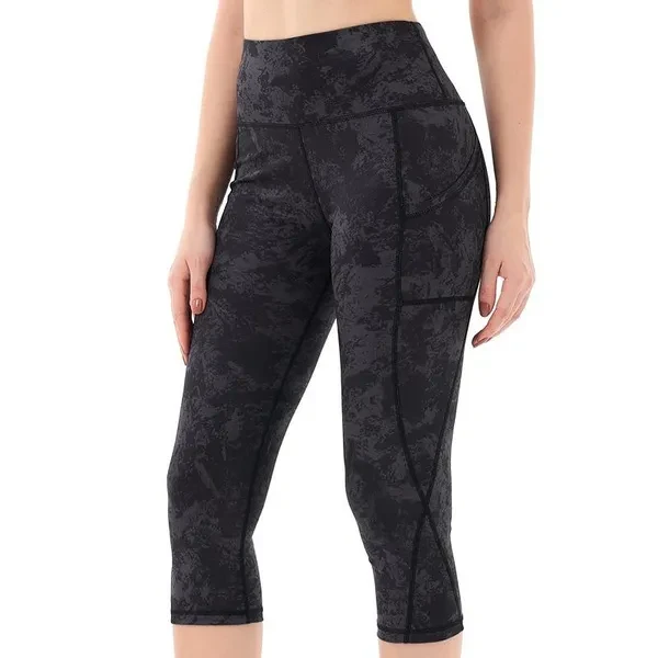 High Waist Tummy Control Women's Printed Capri Leggings - Workout Yoga Pants with Pockets - Athletic Sportswear