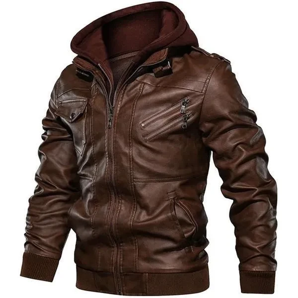 Hood Crew Men's New Hoodie Leather Coat Fashion Casual PU Jacket Slim Leather Bomber Jackets 2 Colors