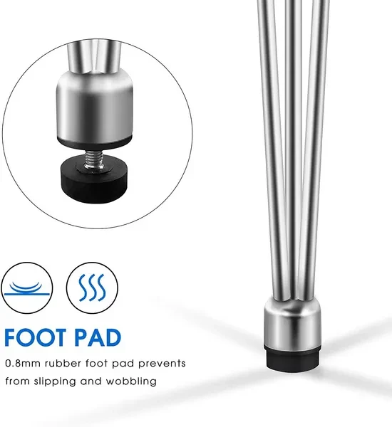 - [Modern Outdoor Dining Table]: The 3/8" diameter hairpin legs in raw steel and double silver coat finish. The table leg shape is a slimline flute and sits at a slightly reclined angle. Extra thick 0.8mm rubber foot pad prevents slipping and wobbling, and protects any floor. If the outdoor ground is uneven, the dining table will be the best choice.