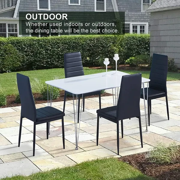 - [Matte White Rectangular Dining Table]: With its high-glossy matte finish and modern design matching with any décor style, this table is perfect for any home. Natural healthy paint with 5 times automatic-painting process, delicate and smooth, which is moisture-proof, anti-corrosive, wear-resistant, and high temperature resistant. Easy to clean with a damp cloth.