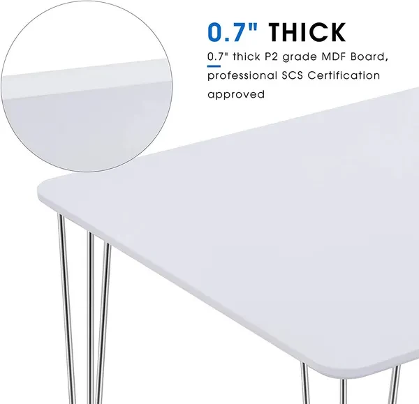 - [Eco-friendly & Safe Leisure Table]: The dining table is made of 0.7" thick P2 grade MDF Board, non-toxic, eco-friendly, professional SCS Certification approved. The round corner is more elegant, which protects the kids from hurting by tabletop corners. No hustle-bustle while they're running.