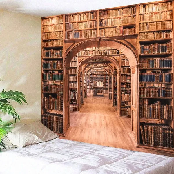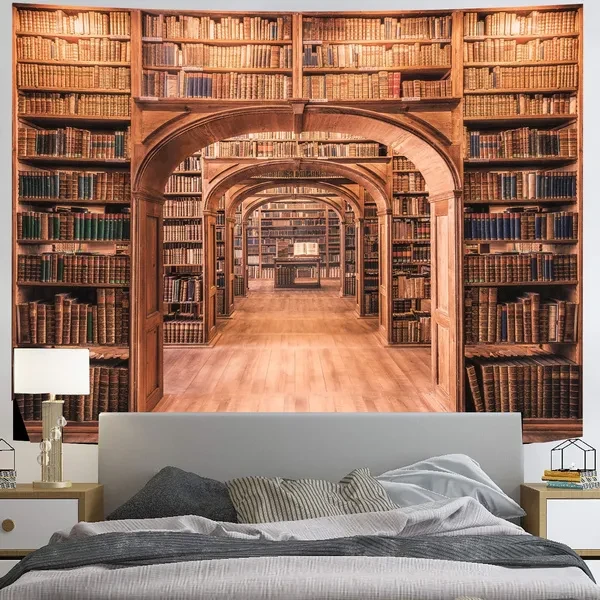 Library Bookshelf Tapestry Wall Hanging Wall Art Tapestry Printed Wall Tapestry for Bedroom Background Home Decor