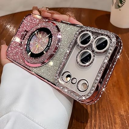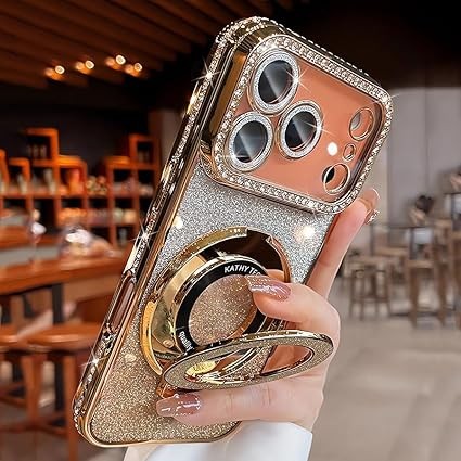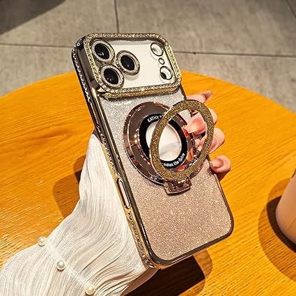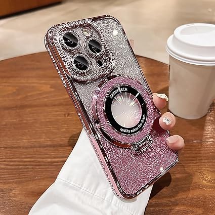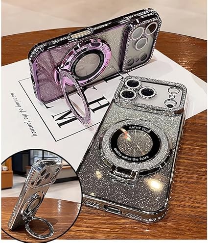 Compatibility: The Magnetic Glitter Stand for iPhone 17 Pro Case is specifically designed to be compatible with MagSafe, allowing you to effortlessly attach and remove your phone from the magnetic wireless charger