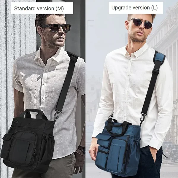 Material: Waterproof Nylon Color: Black,Gray,Blue Size: M(25*11*30cm),L(30*11*34cm) Product feature: Large Capacity ,More pocket, Light weight,Waterproof fabric, with Headphone hole Capacity : wallet,cell phone,notebook,umbrella,Thermos cup,etc. Note: Please allow 1-3CM differs due to manual measurement. (1 inch=2.54 cm,1 cm=0.39 inch)​ Due to the different display and different light, the picture may not reflect the actual color of the item. Thanks for your understanding.