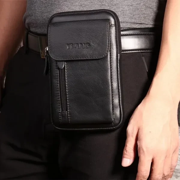 Men Leather Crossbody Messenger Mini Shoulder Bag Casual Multi-Function Travel Cell Phone Case Belt Purse Pouch Male Hook Waist Pack Bag