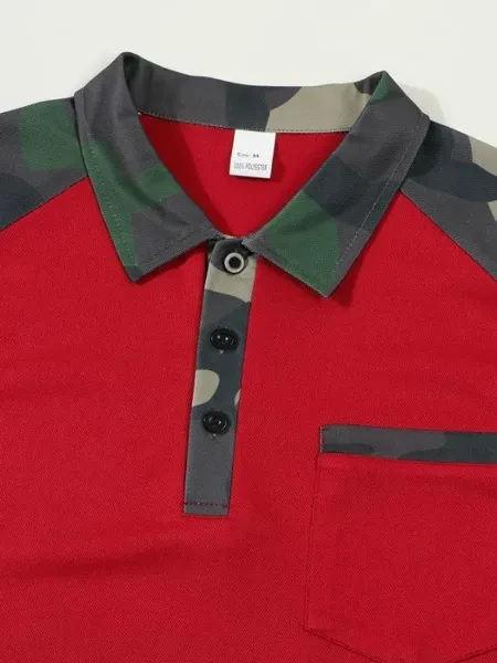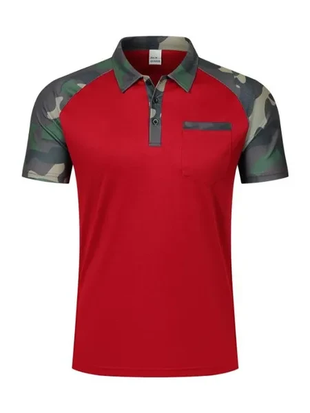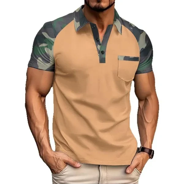 Men Summer Polo Shirts Lapel Button Polo Shirts Fashion Camouflage Patchwork Tshirts with Pocket for Men 4 Colors