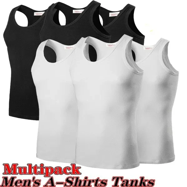 Men's 100% Cotton Tank Top A-Shirt Vest Wife Beater Undershirt Ribbed Black(1 pack equals 1 pc/2 packs equals 2 pcs)