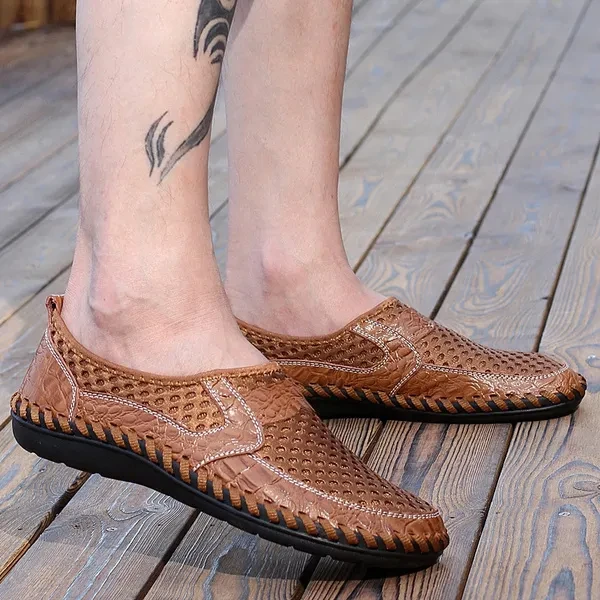 Men's Casual Outdoor Lazy Shoes Breathable Leather Sandals Beach Shoes