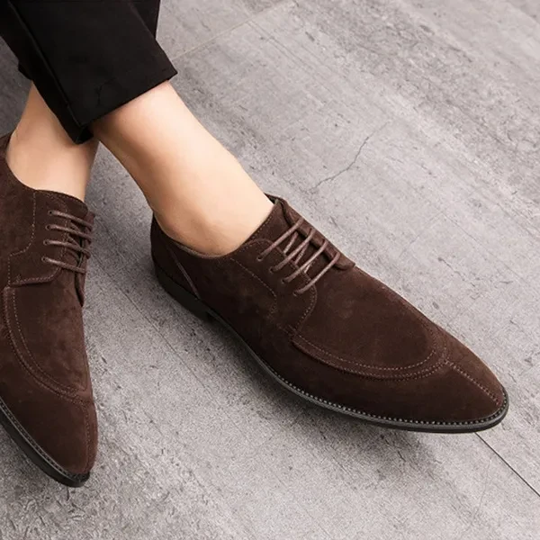Men's Classic Business Suede Lace-Up Korean-Style Toe Slip-On Nude Shoes