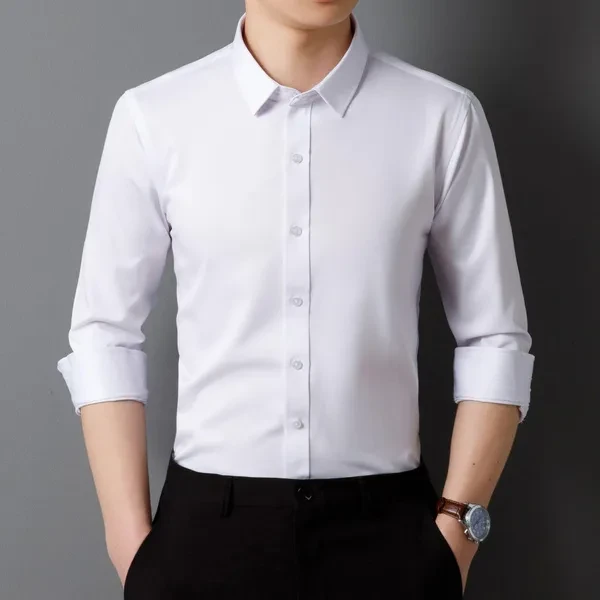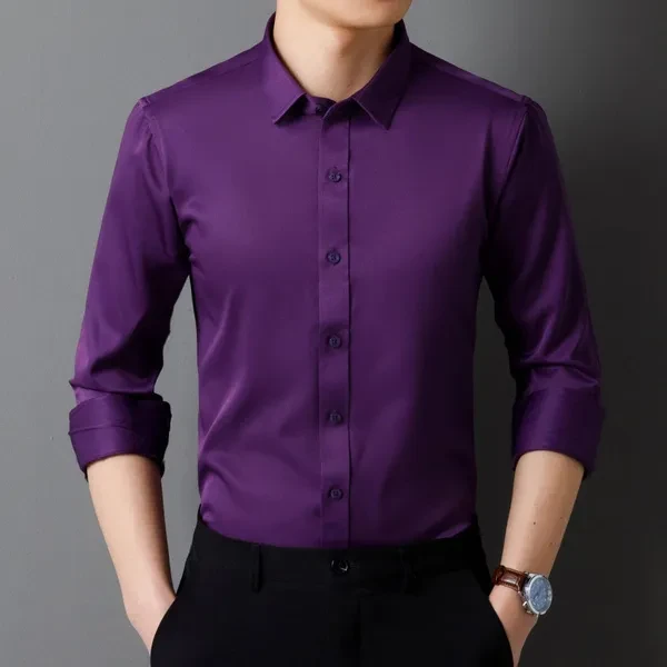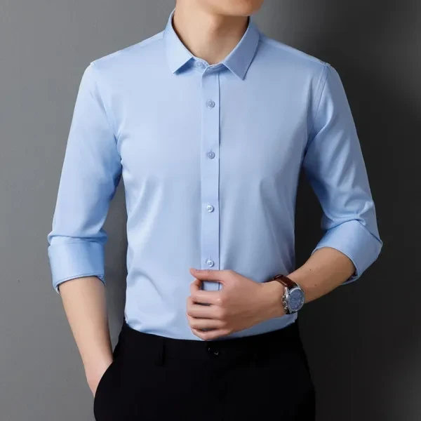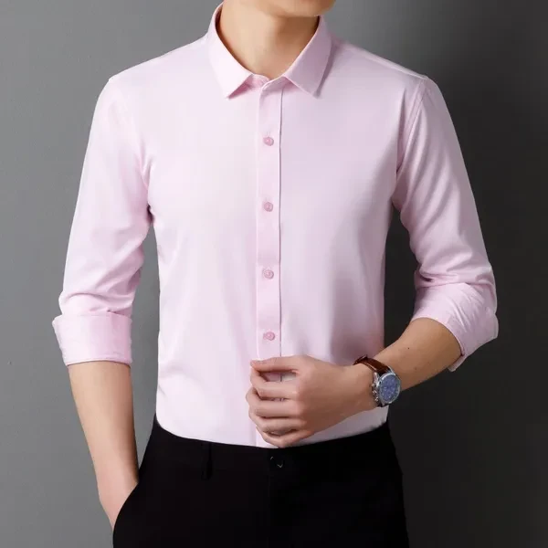 Mens Dress Shirts Long Sleeves Formal Business Non Iron Elastic Casual Shirts