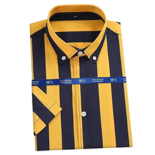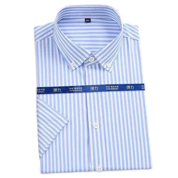 Mens Dress Shirts Office Short Sleeves Striped Bussiness Casual Summer Shirts