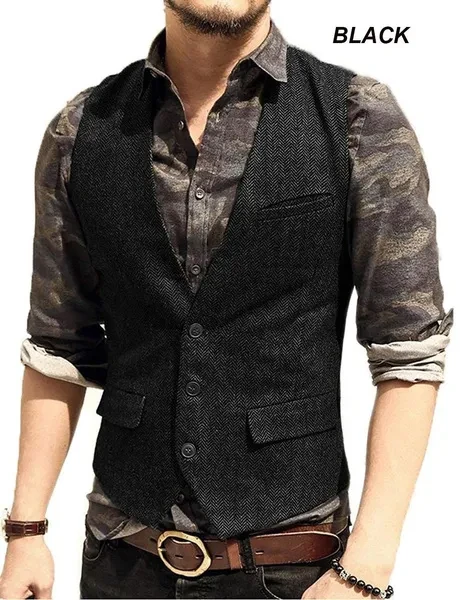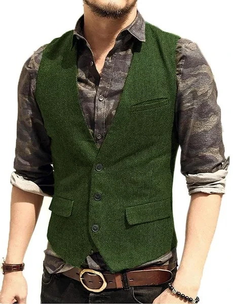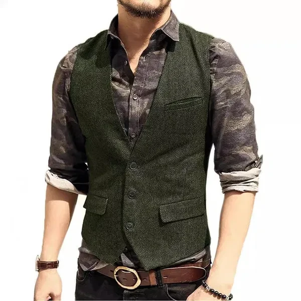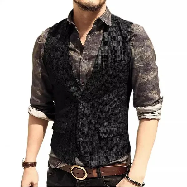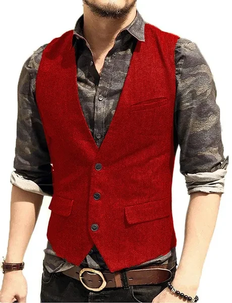 Men's Fashion Suit Vest V-neck Casual Waistcoat Single-breasted Slim Fit Vestcoat Sleeveless Jacket for Men