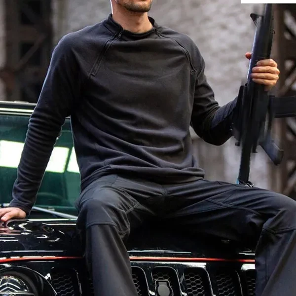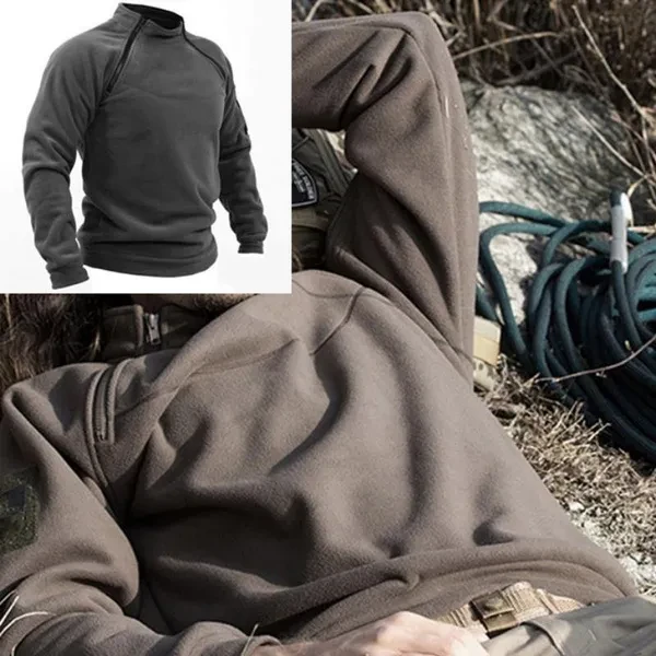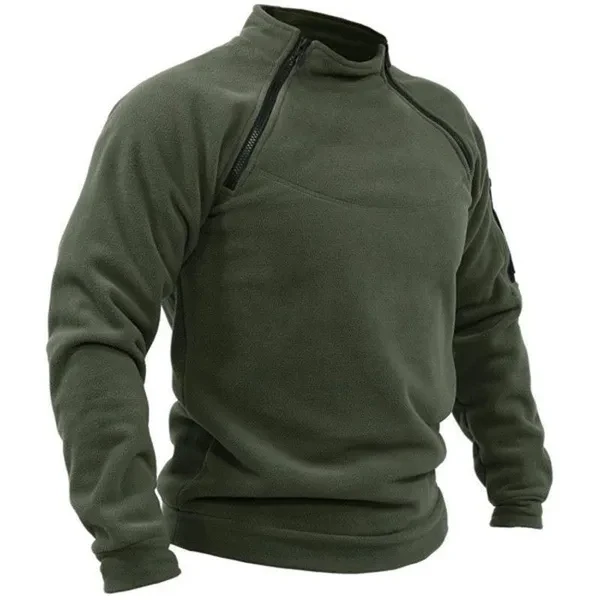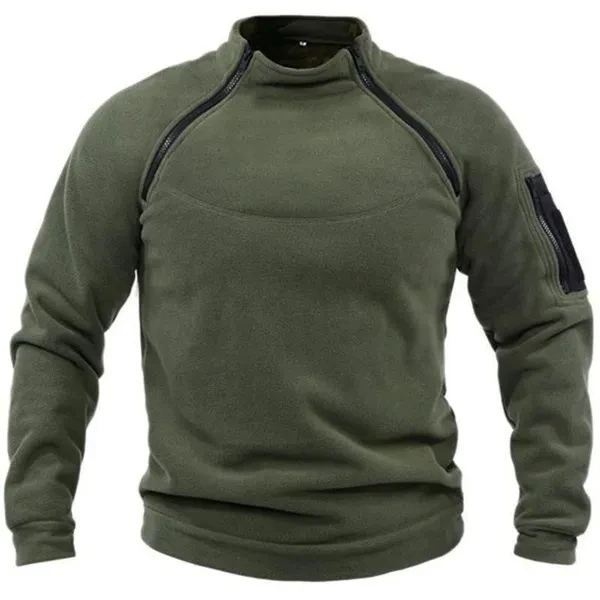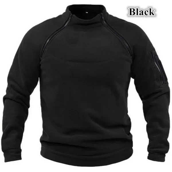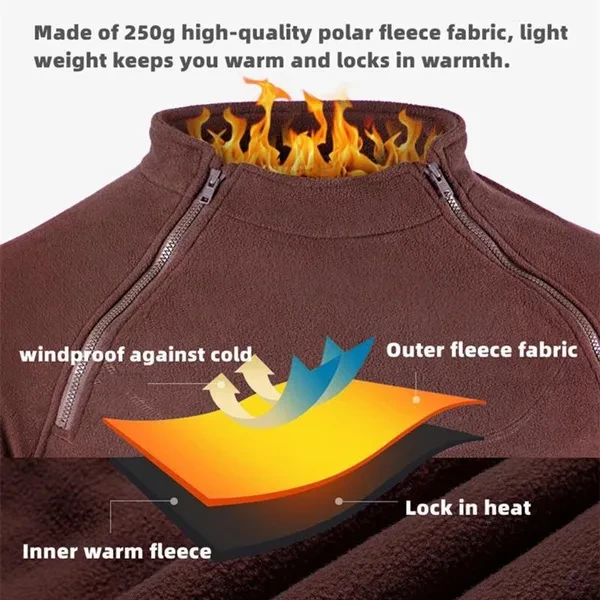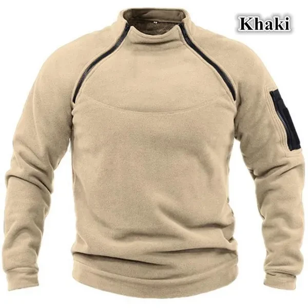 Men's Fashion Winter Warm Fleece Double Half Zippers Pullover Sweatshirt Tactical Winter Outdoor Sports Coat