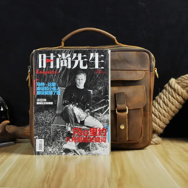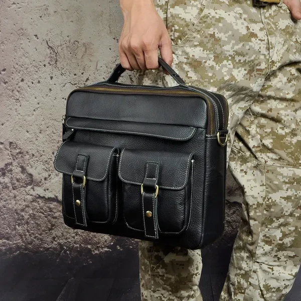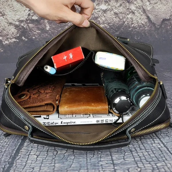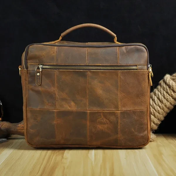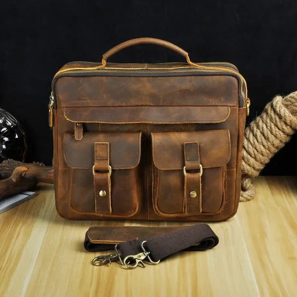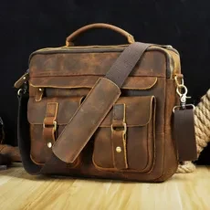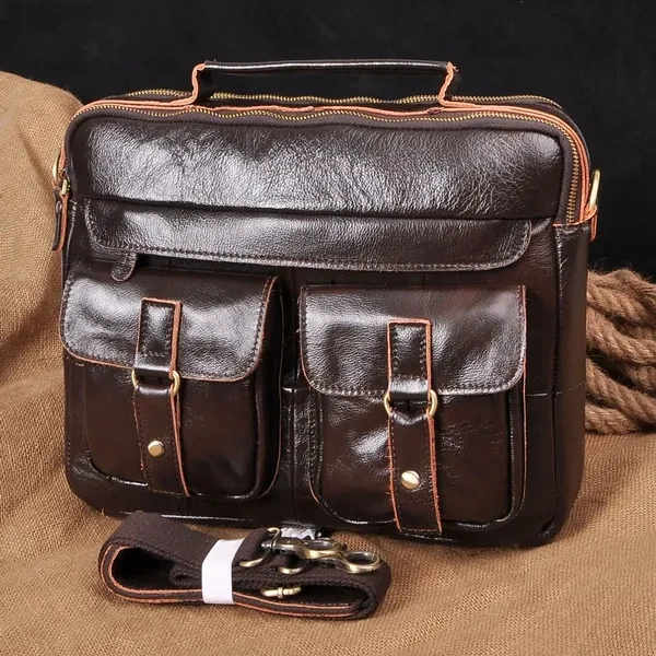Mens Genuin Leather Cowhide Briefcase Attache Sling Messenger Shoulder Bag 13" Laptop Portfolio Bag