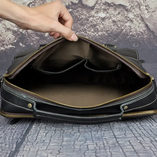 Product NO: B1124 (B207) Material: Genuine Leather Size: 33*7*27cm(13*3*10.5inch) ,can fit a max 13inch laptop Structure: This is a high quality genuine leather glossy briefcase, it helps to keep your commodity organizered. Detachable and adjustable shoulder strap. Attentions: 1. This kind of leather is easy to get scratches, please be noted before placing an order. 2.There may come with some leather smell when you get this produtc, since it's new and unused. If you want to get rid of it asap, please open the package and put it in a ventilate place for a few days, the smell will also fade away as time going. 3.Because each piece is individually crafted, the color of each piece may vary slightly, please understand, thanks.