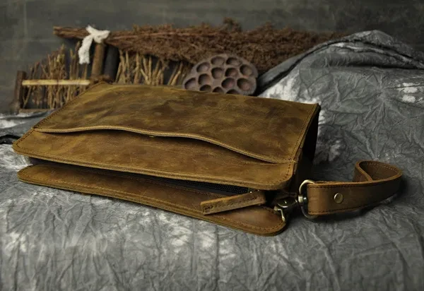 Product NO: H1016 (2753) Material: Genuine Leather Weight: 0.5kg Size: 27cm (10.5") x 19cm (7.5") x 7cm (2.5") This is a hight quality wild style real leather business handbag organizer helps to keep your commodity. It comes with a removable handbag strap. it can also be used as a shoulder strap with a removable shoulder strap. This kind of leathe is easy to get scratches on the surface and also come with a genuine leather smell, please be noted before placing the order, thanks.
