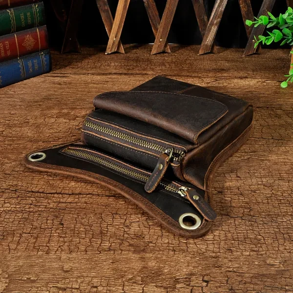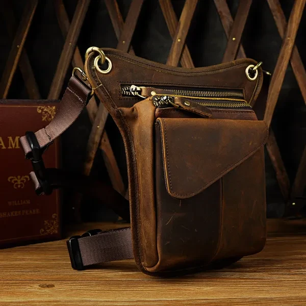 Product NO: G1005 Material: Genuine Leather Size: 15 x 3.5 x 22 cm (5.9 x 1.37 x 8.6 inch) Weight: about 0.4kg It's a little bag around your waist and leg. It looks to sit in the perfect location for east access while riding or climbing. This kind of leathe is easy to get scratches on the surface, please be noted before placing the order, thanks.