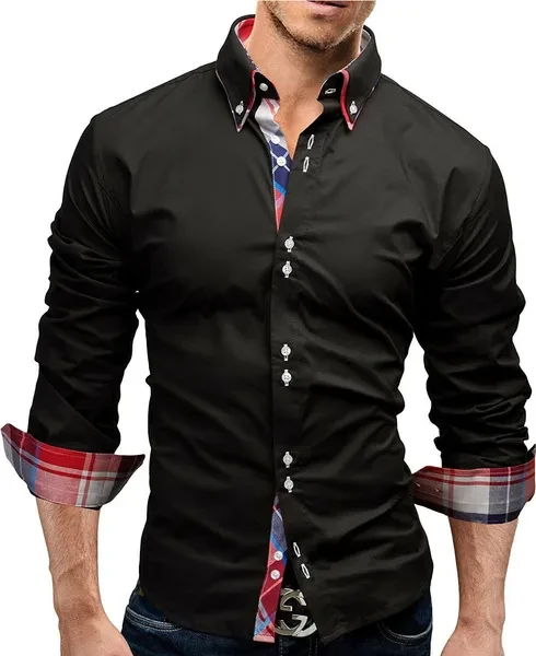 Mens Long Sleeves Shirts Business Work Dress Button Down Slim Multicolor Shirts