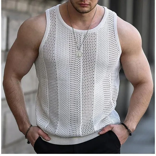 Men's New Cut-Out Knit Men's Sleeveless Slim Fit Knit Vest