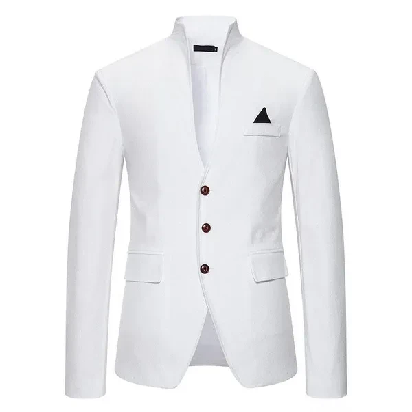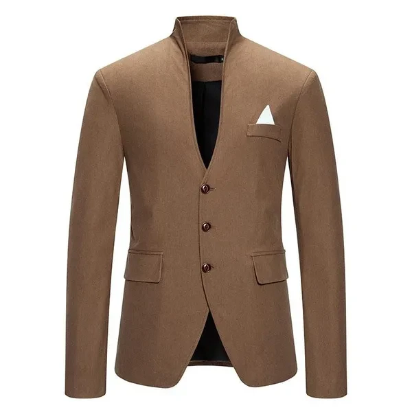 product description pattern: plain Supply category: spot Clothing pocket style: flap pocket Material function: no ironing Color: white, black,coffee, khaki Product Category: Casual Suits Content of main fabric components: 80 Size:M,L,XL,XXL,XXXL Version: slim fit Lining composition: polyester fiber (polyester) Collar type: Stand collar Fabric name: cotton blend Applicable scene: leisure Slit method: middle back slit Placket: Single row, three buttons Main fabric composition: polyester fiber (polyester) Clothes length: regular Applicable gender: Male Applicable age group: adults Suitable season: four seasons Sleeve length: long sleeve Style details: color matching Clothing hem design: straight hem Style:British Error range: 2cm Technique: Collage/Splicing Package includes: 1 * Suit (Suit Only, Others Not Included) Notes: 1. This is Asian size, which is usually smaller than US/Euro size, please check the size chart carefully before you place an order. 2. If you can't choose the correct size, please leave a message in English, about your height in CM and weight in KG, then we will help you to choose the right size. 3. The picture shown is 100% rear object photography, however, different computers display colors in different ways, the actual project color may be slightly different from the color of the real object. 4. Our size table is based on actual product,please allow 1-3cm differs due to manual measurement. 5. .If you are Satisfied with the goods, Please Give praise, if you are in doubt please feel free to contact us. 6. You are welcome to visit our store, maybe you will find other goods your are interested. I wish you a happy shopping and have a nice day !