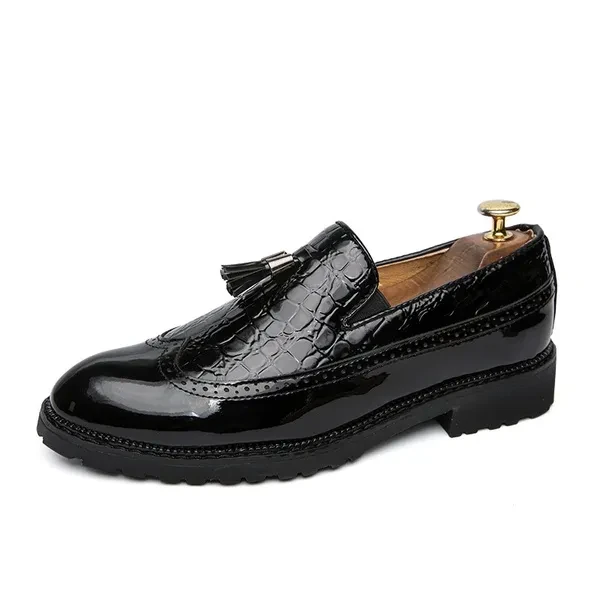 Men's Wine RedBlackWhite Wingtip Tassel Loafers Mens Embossed Vamper Leather Slip-ons Mixed Color Casual Dress Shoes for Men Size 38-47