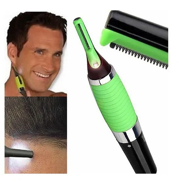Features Brand New Built-in LED light Rubber non-slip grip Powered by one AAA battery (not included) 2 comb attachments for trimming eyebrows/mustaches. The 2mm/4mm Comb is for trimming shorter eyebrows/mustache hairs. The 6mm Comb is for trimming longer eyebrows/mustache hairs Trims hair with micro precision Note: Water will caause damage to your Trimmer. Do not use Trmmer in a damp room or near water. When not use, be sure the trmmer is turned off. Package includes 1 x Personal Hair Trimmer 2 x Comb 1 x Cleaning Brush