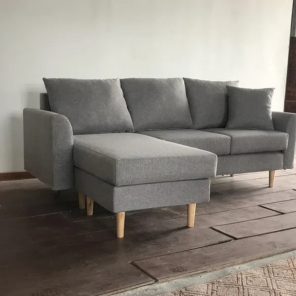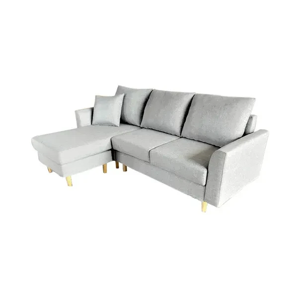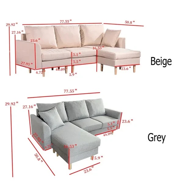 L shape corner sofa bed 3seater fabric sofa with left or right footstool couch settee high back soft sofa bed Style Modern Type Sofa bed Material Fabric Colour Beige, grey To Seat More than 4 Room Living Room Pattern Solid Firmness Soft Descriptions: This corner sofa emphasizes versatility. It has a reversible design that means it can be right or left facing and a sleek, understated design that makes it a good fit in any living room or bedroom. They will be an excellent complement of any living room, home office, study, children's bedroom or hallway Solid hardwood Frame make up overall structure, sturdy and durable & Strong plastic legs, great load bearing performance and longer service life High elastic sponge wrapped sprung seat cushions with added support,quick rebound, The pressure is evenly dispersed and not easy to collapse &The pillow is filled with high quality doll cotton, super comfortable, resistant to deform, durable and sturdy, bringing you great relaxation feeling. Features: This sofa can be assembled as both left & right hand sofa Perfect for bedroom, living room, study, office, etc.. Its design maximizes space, making it ideal for flats and apartments. High elastic sponge wrapped sprung seat cushions with added support, quick rebound, bringing you great relaxation feeling High backrest and thick padded seat, it will offer you the maximum comfortable seating experience. Please note: this requires self assembly Dimensions: Total Size:W197*D129*H69cm Colour:Beige , grey