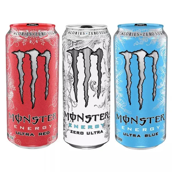 Delivery is not available to Puerto Rico, HI, AL,AE, APO/FPO or PO box addresses Highlights:- Variety pack contains 24, 16-ounce cans of Ultra Blue, Ultra Red and Zero Ultra Crisp and refreshing, less sweet yet full flavor Keeps mind and body energized for longer Zero Sugar 10 calories per can About this item:- The Monster Energy Drink, Ultra Variety Pack keeps your mind and body energized with its delicious, calorie-free beverages. Each pack contains three tasty flavors and is perfect when people need the caffeine and vitamins to go the distance, mentally and physically. What Is Included in This Monster Drink Pack? This variety pack contains twenty-four 16-ounce cans of Monster Zero Ultra cans, including eight Monster Ultra Blue flavor, eight Monster Ultra Red flavor and eight Monster Zero Ultra, some of Monster's most popular berry and citrus flavors. Each refreshing drink has zero fat and zero sugar. They're made with a special blend of carbonated water, natural and artificial flavors, caffeine and vitamins. Are These Monster Energy Drinks Tasty? Yes. Each can boasts a fresh berry or citrus flavor and is blended with sparkling water for the ultimate in refreshment. This Monster 24 pack is ideal for those who find typical energy drinks too sweet, as these zero-sugar alternatives contain erythritol, a natural sweetener. In addition to its invigorating taste, these energy drinks are infused with vitamins and antioxidants, including ginseng, taurine, vitamins B3, B5 and B12 and l-carnitine in addition to caffeine. Who Loves This Monster 24 Pack? Anyone who loves refreshing beverages that keep them energized and focused. Monster Zero Ultra drinks are popular with those who do not like the taste of coffee or prefer to keep coffee for mornings and energy drinks for the afternoon. This variety pack offers drinkers a crisp and refreshing beverage that is less sweet than other energy drinks and is formulated with caffeine, vitamins and minerals to naturally stimulate the body's energy resources. Because these drinks are free from calories, sugar and fat, they're a popular choice for those who want tasty caffeinated beverages but are watching their weight. For those who work countless hours or are fitness buffs, energy drinks keep their mind and body ready for the tasks at hand. This Monster 24-pack has made its way into homes, convenience stores and vending machines across the nation.