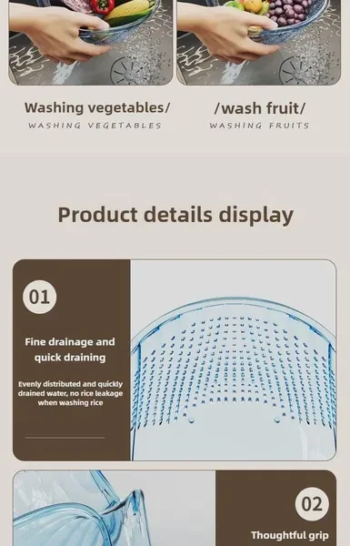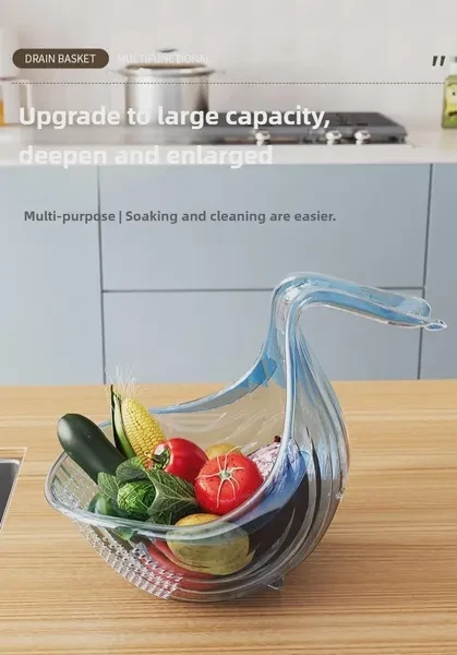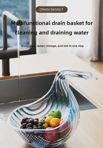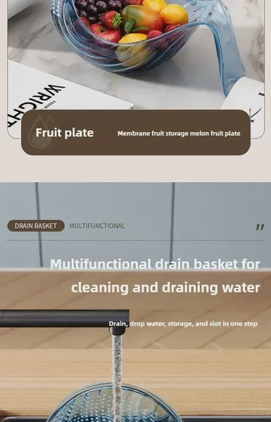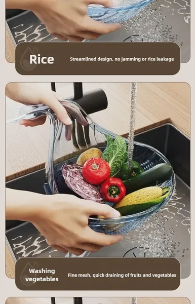 Multifunctional Drain Basket Multifunctional Fruit Basin Kitchen Household Vegetable Wash Basket Transparent Rice Cleaning Tool
